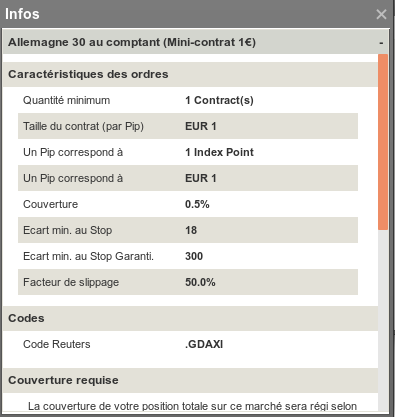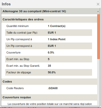 The minimun stop in PRT CFD in France was 4 for the dax.