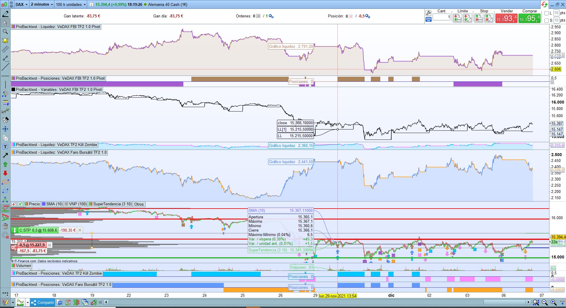 Por ejemplo, en la captura de pantalla adjunta, hay un largo que se abre el 29/11/2021. El 30/11/2021 el precio perfora a la baja el mínimo diario del 29/11/2021 (dia de apertura del largo). Lo que quiero plantear en la estrategia automática TF 2 min es que si el precio perfora a la baja el mínimo diario del día de apertura, que cierre el largo y abra un corto.