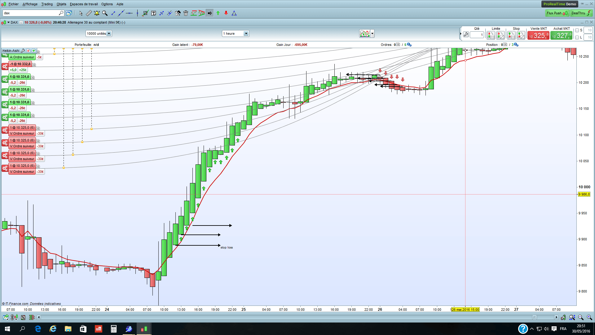 De acheter que si les bougie précédent est haussière (verte) et d’avoir un stop loss en bas de la bougie précédent au dernier plus bas si vous voulez et même chausse pour la vente. comme dans la photo jointe .