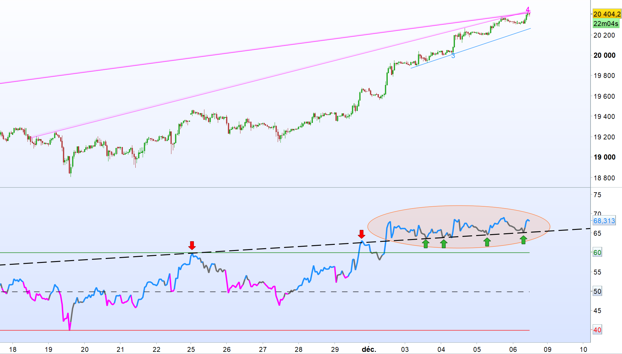 // 1. RSI values remain in a 60/20 range