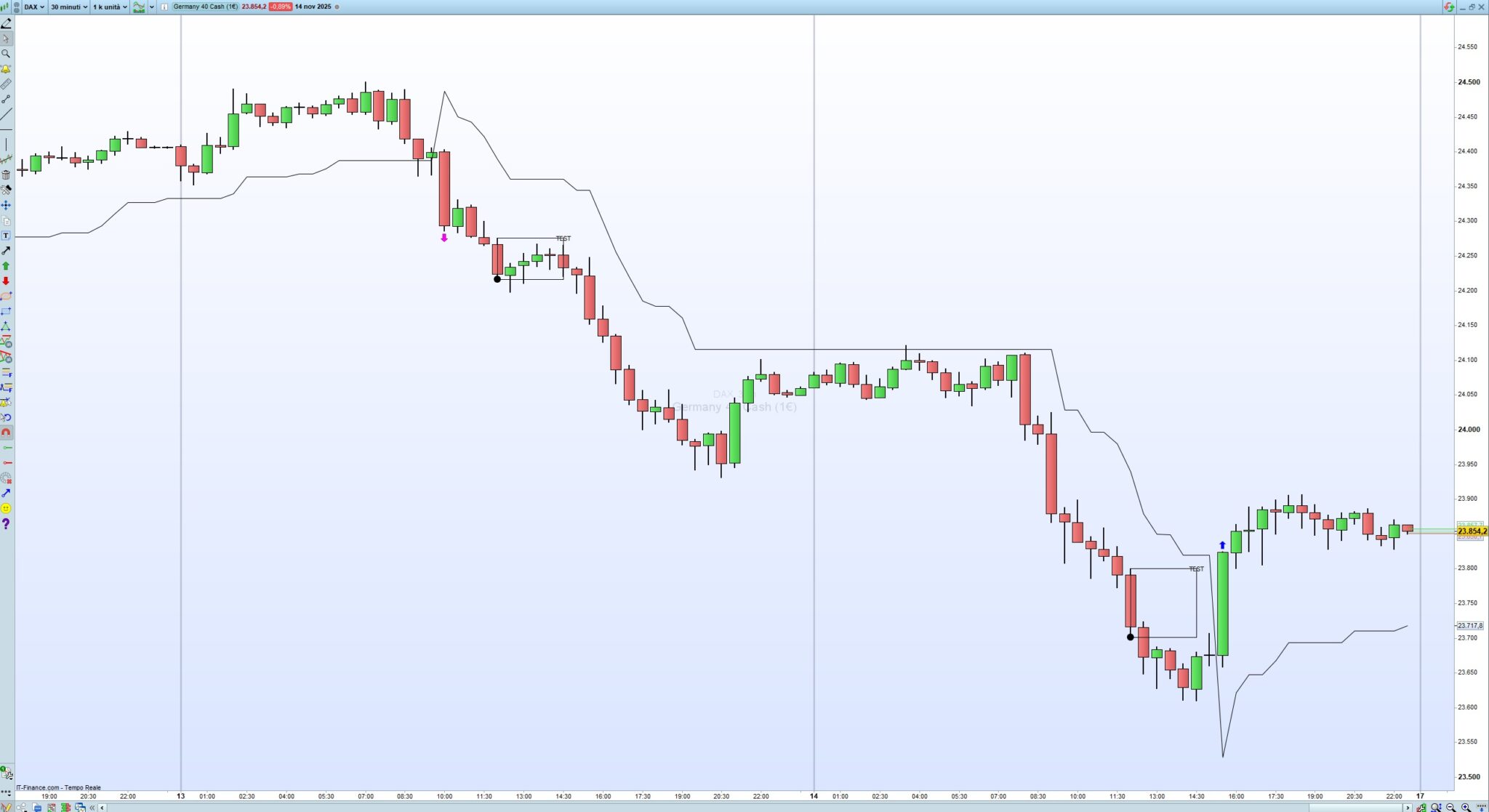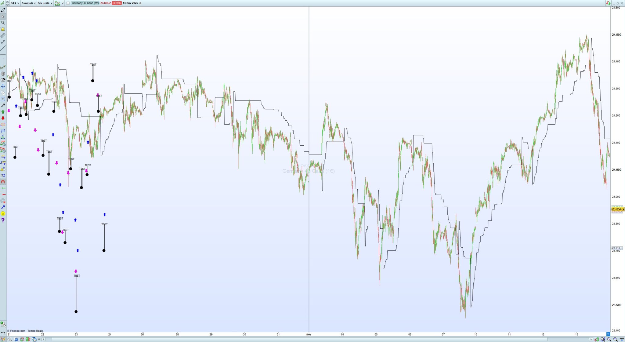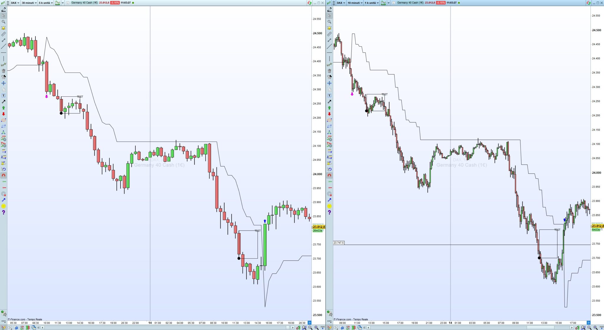 Questo l’ho provato sul DAX, 1 minuto e 5 minuti, e funziona: