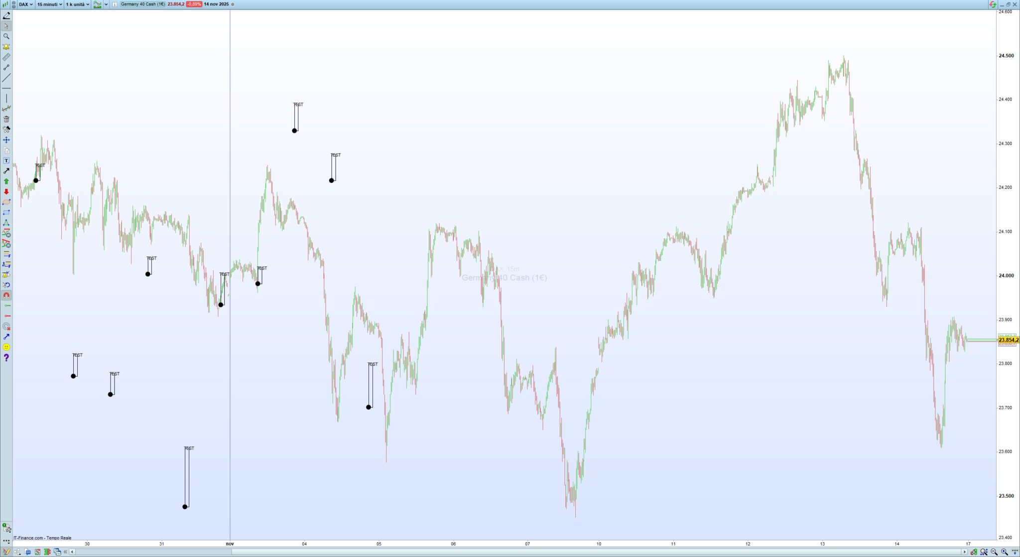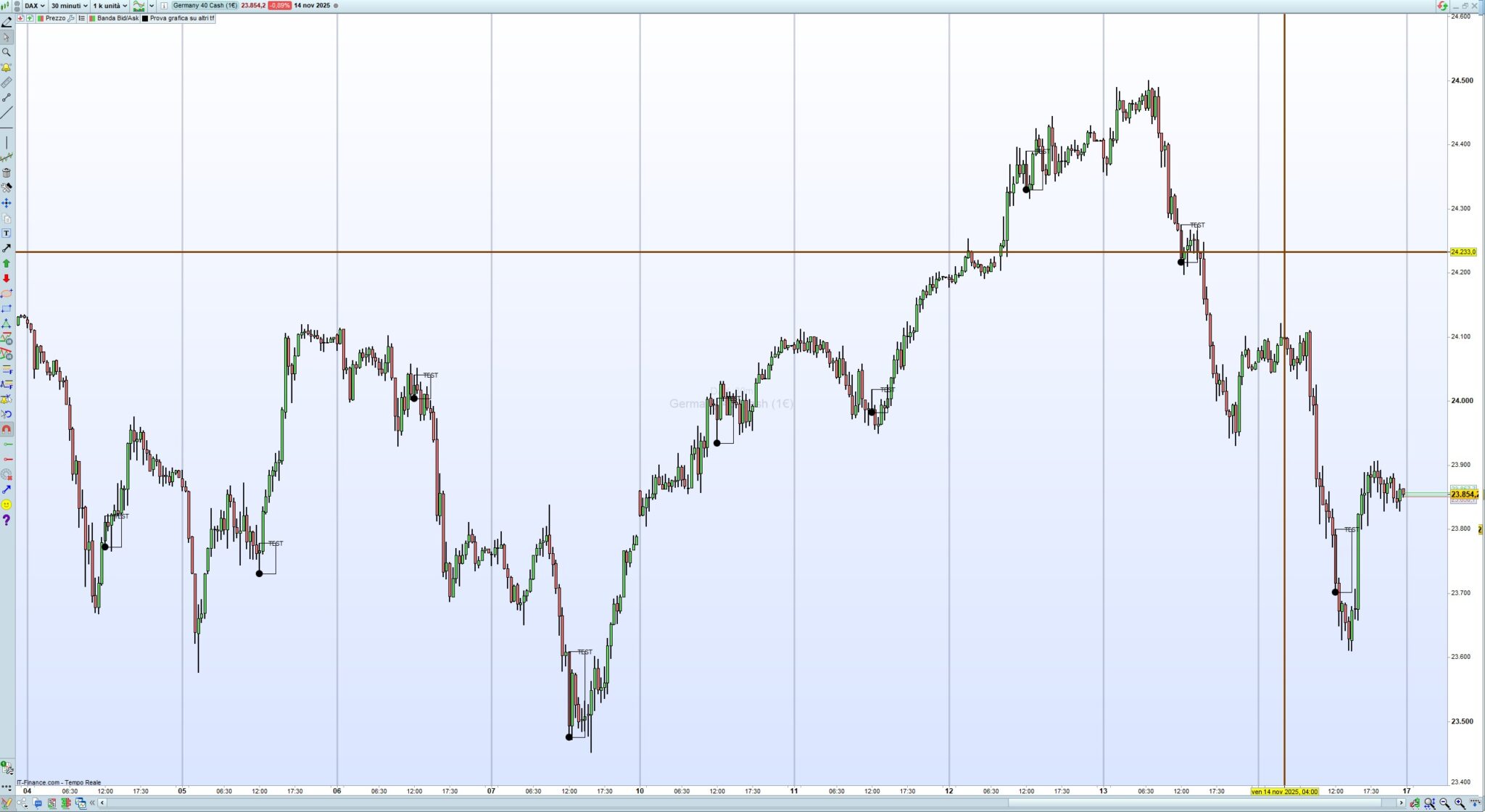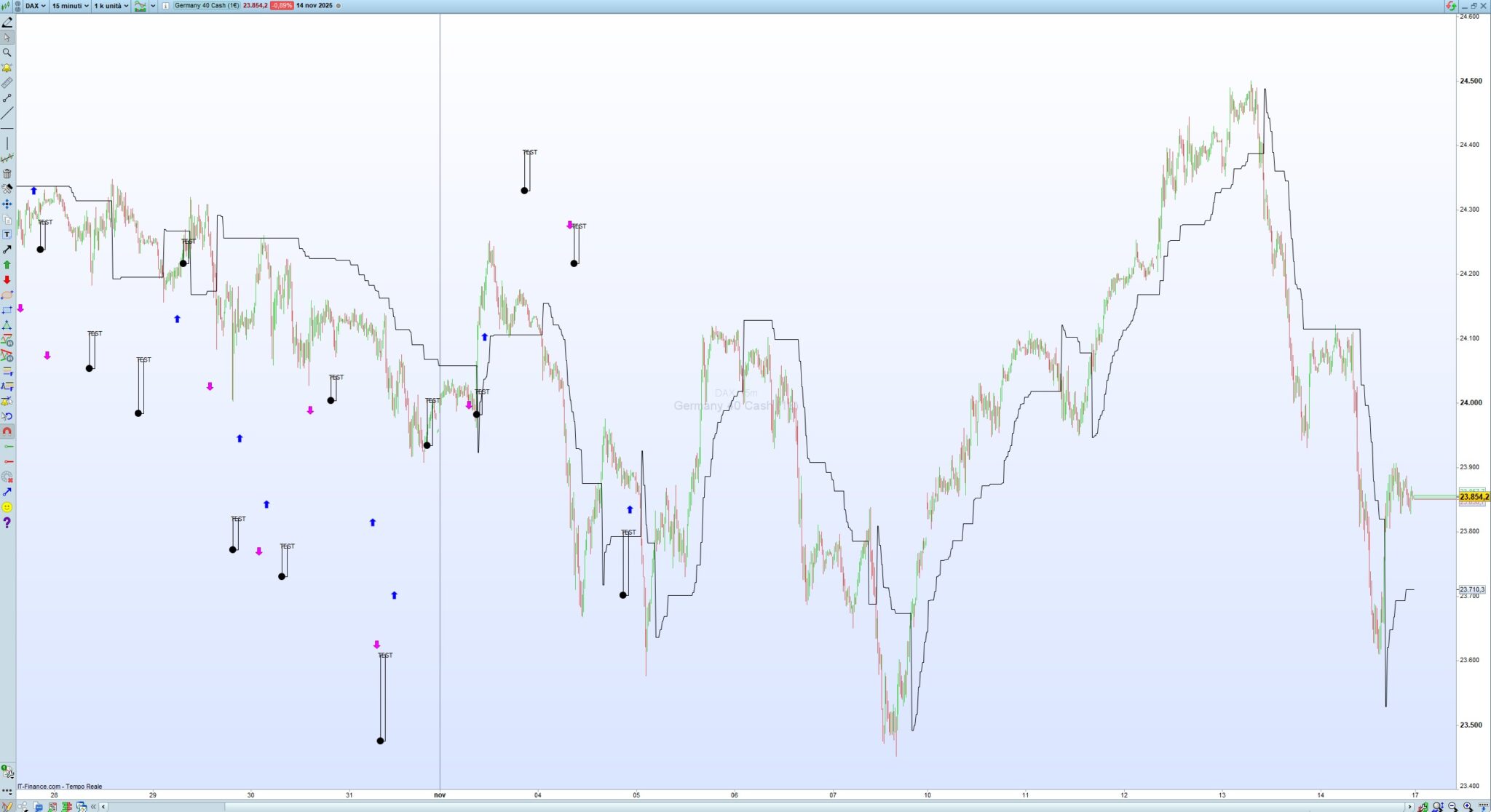 Questo l’ho provato sul DAX, 1 minuto e 5 minuti, e funziona: