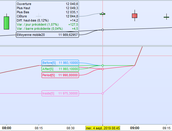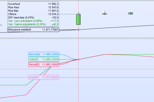 dans le cadre du développement d’une stratégie, j’utilise des indicateurs différents en fonction de la plage horaire en cours. Lors de mes backtests, je me suis rendu compte de l’incohérence de certaines valeurs, et ai isolé cette anomalie dans un petit indicateur pour vous en faire part: