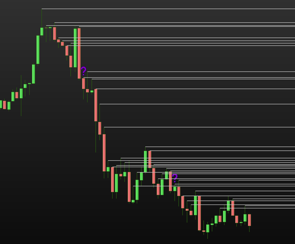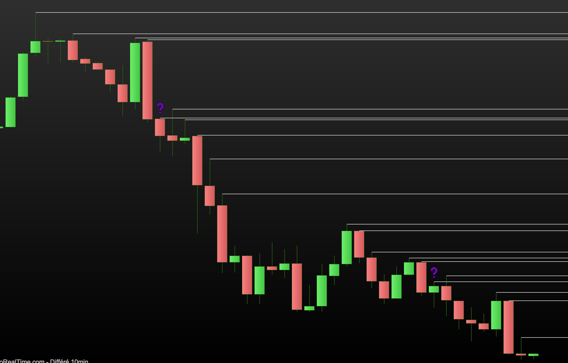 D’autre part, même si ce n’est pas lié à l’anomalie directement, je ne vois pas trop pourquoi tu fais cette autre boucle sur j (à moins qu’elle serve dans un autre bout de code non montré). Ne pas faire de boucle sur j, et juste faire “if high[i] > highest[i](high) then” devrait te donner tes drawray sans aussi regarder highest[i-1], highest [i-2], etc… non?