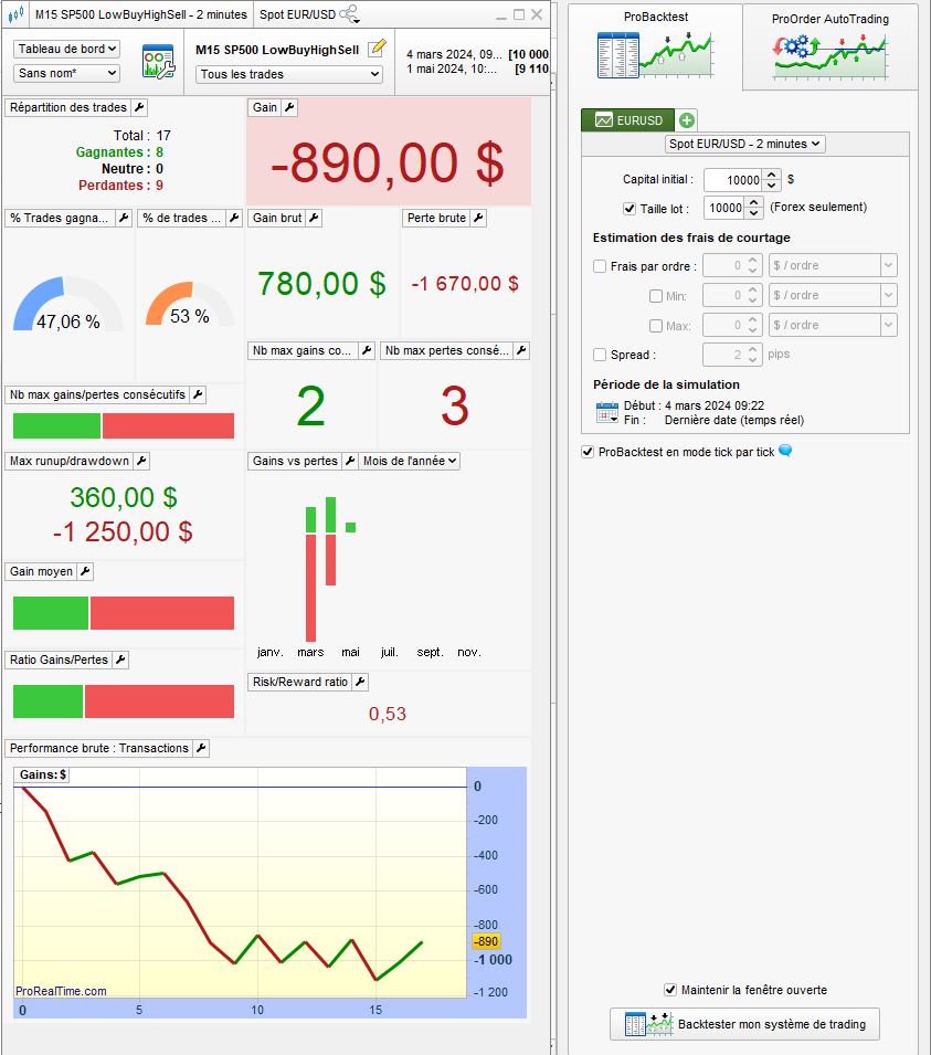 J’ai fait le test ici avec un système téléchargé depuis la Librairie (M15 SP500 LowBuyHignSell) mais je rencontre la même anomalie avec différents systèmes.
