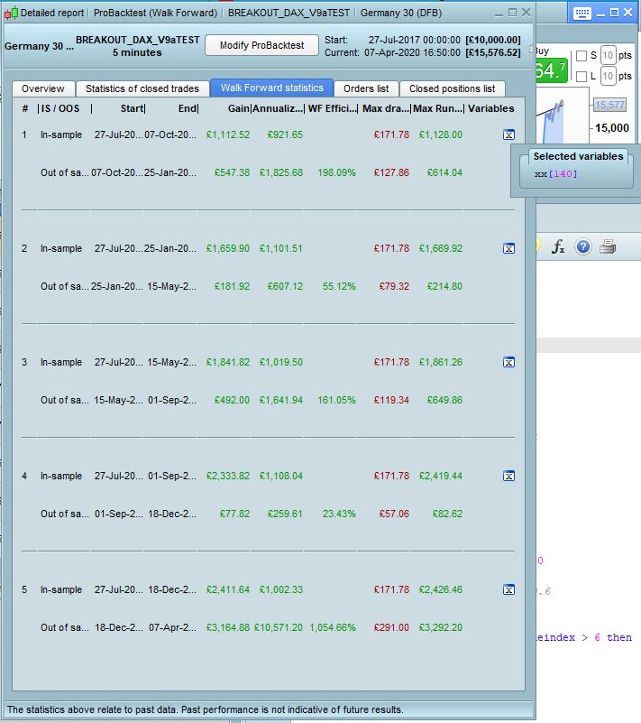 I ran 2 backtests on the same data optimising the variable xx which was used for a stoploss value, one with walk forward analysis and the other without. The walk forward statistics show the selected variable (xx) as 140 across all test ranges (I could only capture the one as shown in the attachment but all periods show the same value for xx at 140). Looking at the optimisation outcome without walk forward shows the best outcomes with an xx value of 165. The 2 overall outcomes are very different based on which value is selected as shown in the attachments, the walk forward one being considerably worse, surely at least one of the test periods in walk forward analysis should have selected a value of 165 ?