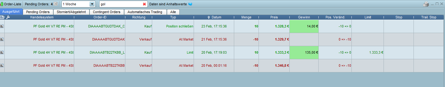 Until 08.02.18 09.00 o’ clock the orders were executed correctly and from 08.02.18 13.00 o’ clock the orders are executed 15 minutes delayed. You can see this very clearly in the screen shorts, especially in Screenshort1, and you can see from the screenshots that it is not a single trading system, but a fundamental problem of the platform.
