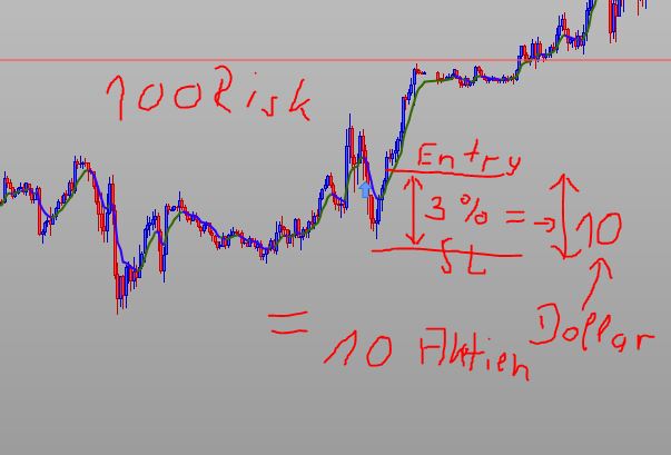 bei einem sl von 3 % ist das risk 10 $ also sollen 10 Aktien gekauft werden !