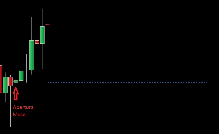 Come posso identificare il prezzo dell’apertura appartenente alla prima candela del mese corrente?