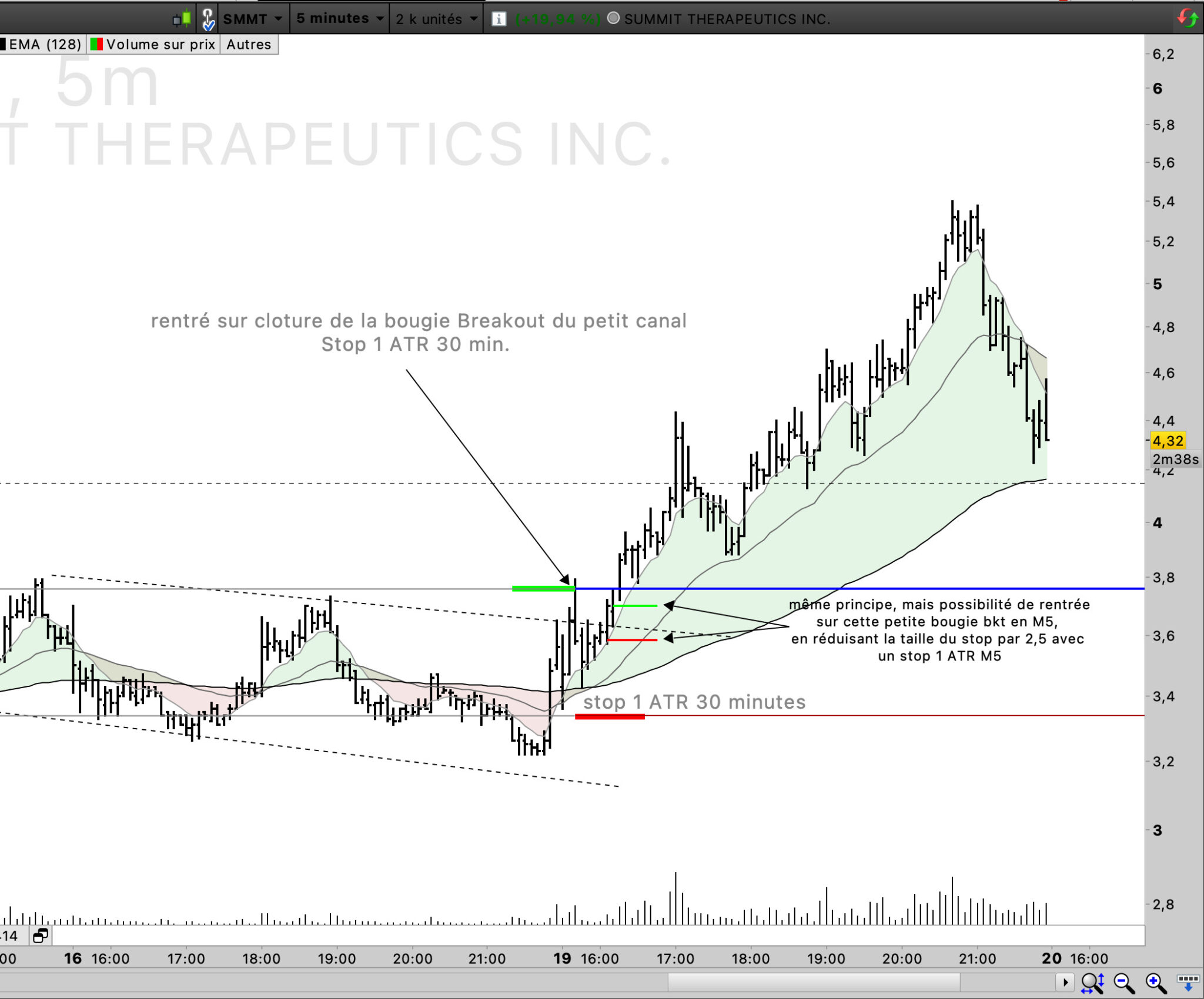 J’essai de trouver une entrée peu risquée en 2 heures, ou en 30 minutes. avec donc des stops 1 ATR de 5,6% et 2,5% respectivement.