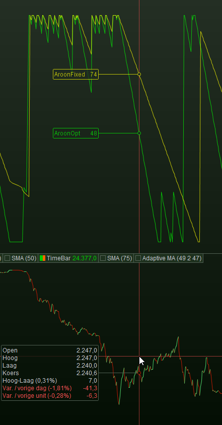 Graph AroonUp[aa] coloured (0,255,0,180) as "AroonOpt" // Green.