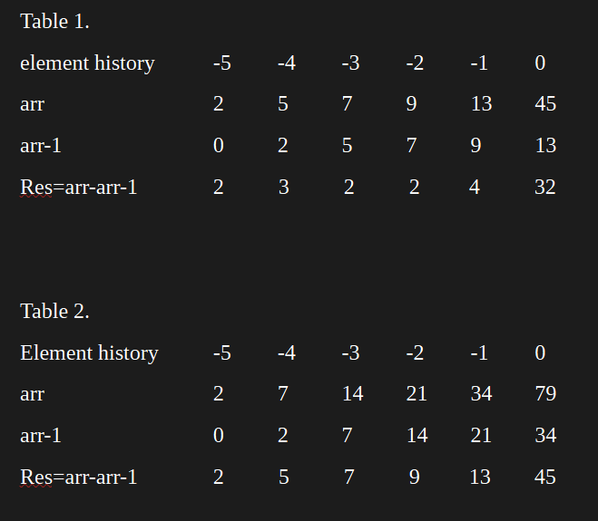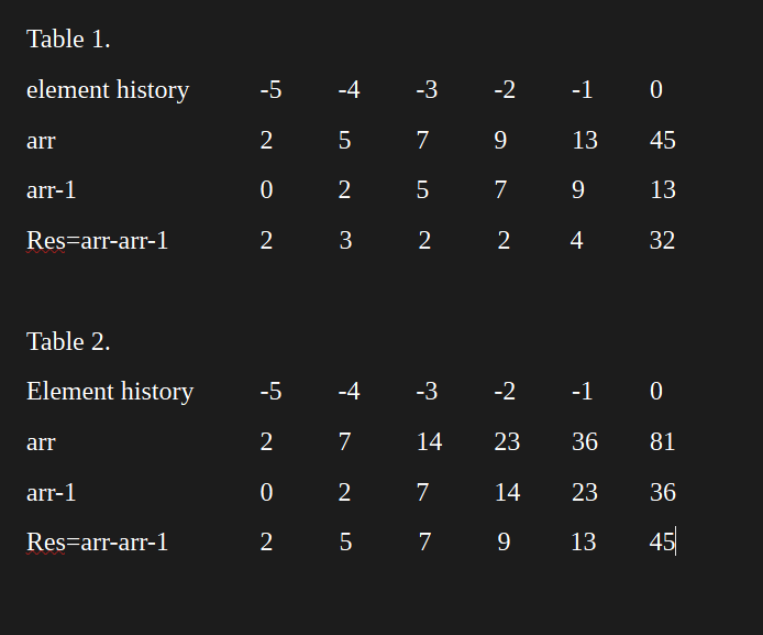 Note: the difference value of Res=arr-arr-1 is now the same as the original arr values.