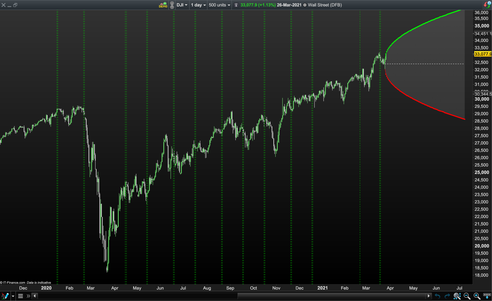 https://dthelp.dynamictrend.com/Probability_Envelope.htm) of a cone that also has vertical green dotted lines denoting options contract expiry dates. It would be great to know how your indicator could be coded so as to add IG Index’s Dow Jones/Wall Street DFB expiration dates for these following dates?