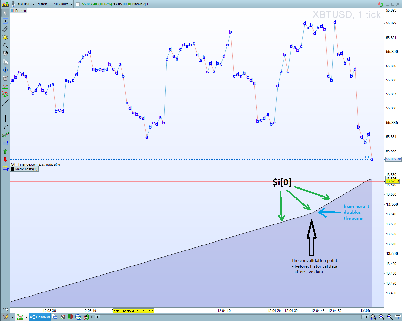 I attach here a video of the previous code launched on XBTUSD 1tick.