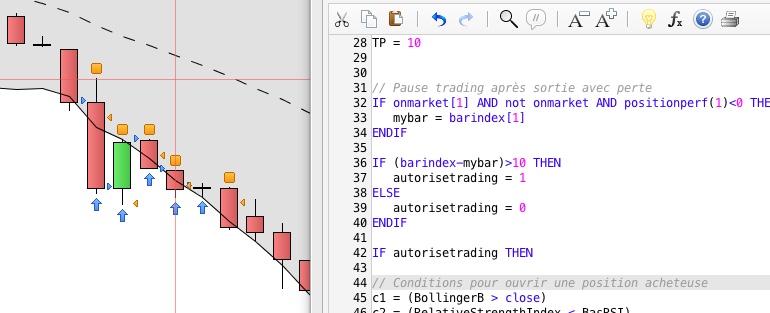 Effectivement ça coupe bien le trading, mais ne le reprends pas par la suite… D’après ce que je comprends si il vérifie la condition “barindex-mybar>2” alors il “autorisetrading = 1” pas de problème. Mais s’il ne vérifie pas la condition, alors “autorisetrading = 0” et là tout s’arrête sans jamais reprendre. Je suppose qu’il faut le faire “re tester” jusqu’à ce qu’il la vérifie mais je avis encore avoir besoin de votre aide ici.