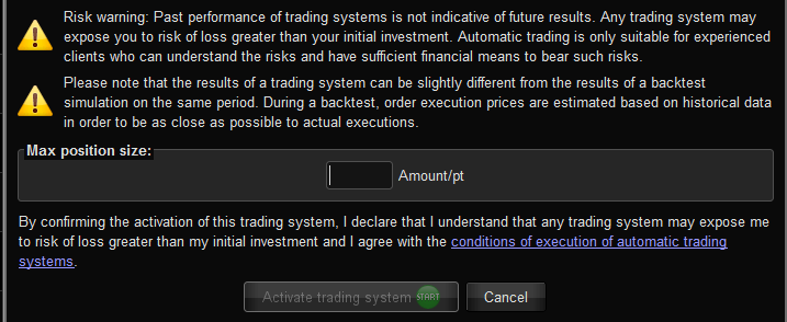 After you have asked a Back Test to Auto Trade and then “Start” is pressed there is a box to fill out at the bottom of the screen.