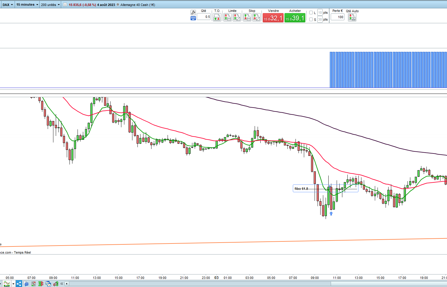 Beim 15-Minuten-Dax liegt der Fibo 61,8 bei 15885