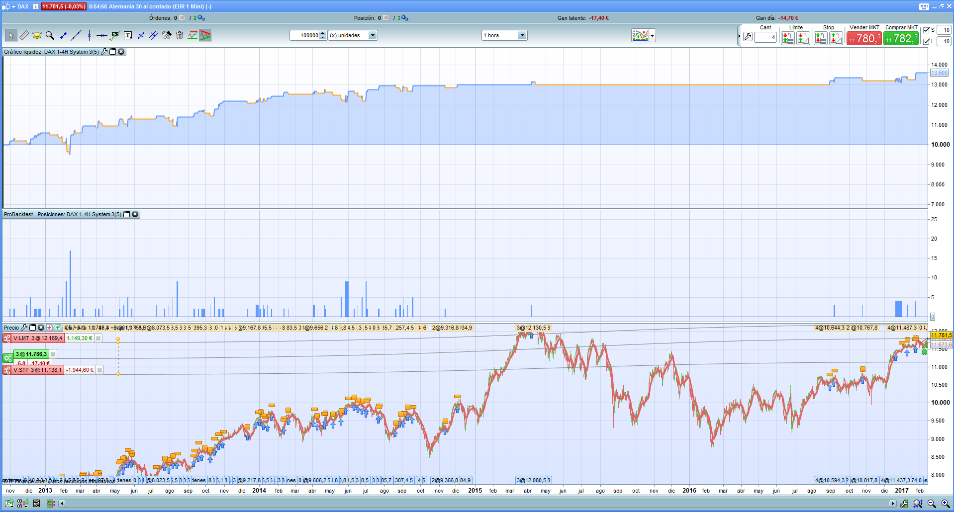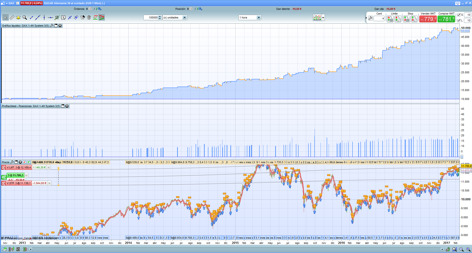 According to the conditions it has to operate from Tuesday at 9am until Thursday at 6pm. That is, tonight or tomorrow could also operate. Yes, it is more beneficial with great volume, but I see that with little volume does not come out negative, there are no losses, I see that these last years has increased the volume as we said. But I do not see that there is a negative result in any case. I will try with some other condition to see if I can refine it, but I certainly see good expectations for this robot in both dax and cac. You could look to see 60 put take to see if they change much the results and get a little more in each operation