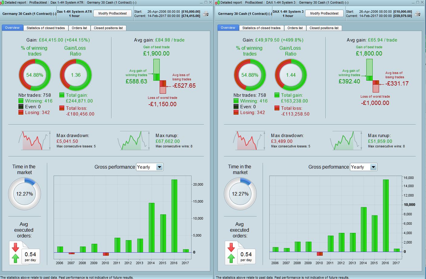 Comparison with system 3 below as well. They are pretty much identical results for the first 6yrs and then ATR starts outperforming gradually over the longer term.