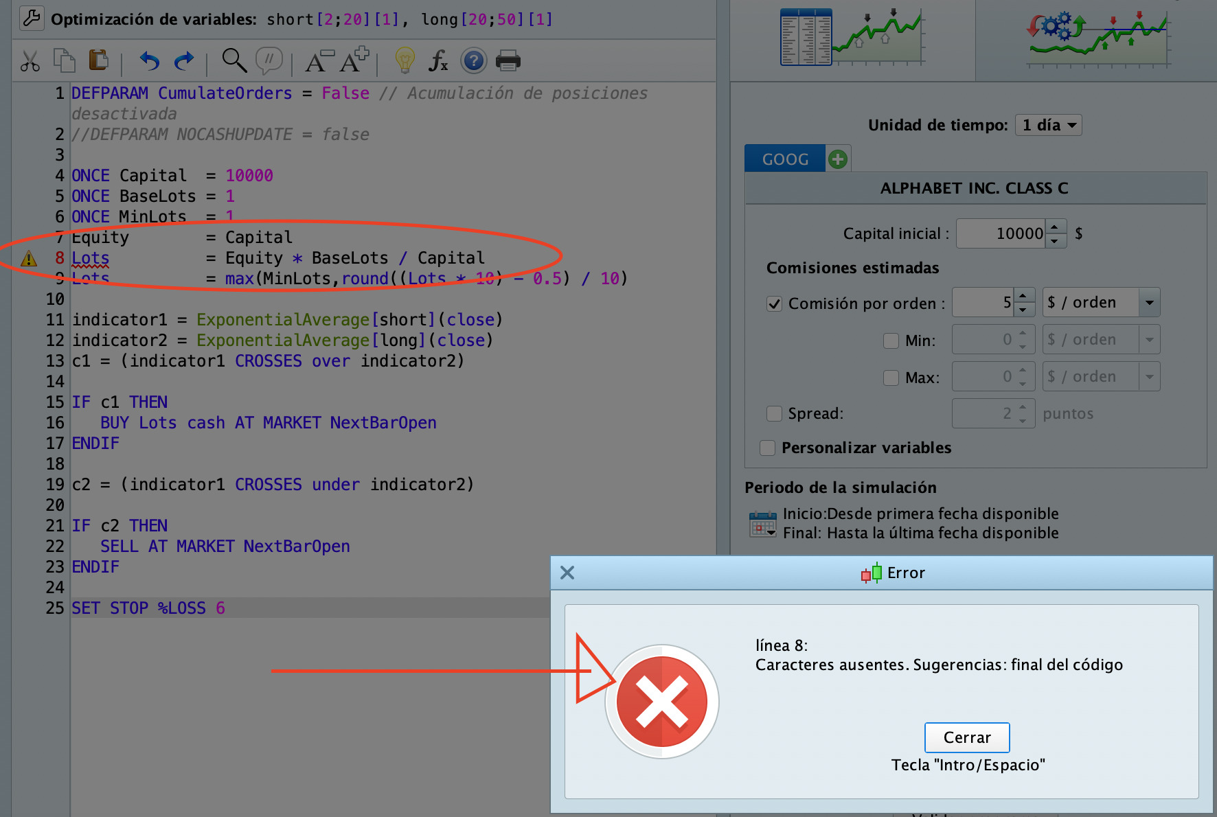 DEFPARAM CumulateOrders = False // Acumulación de posiciones desactivada