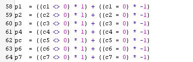 p7 = ((c7 <> 0) * 1) + ((c7 = 0) * -1)