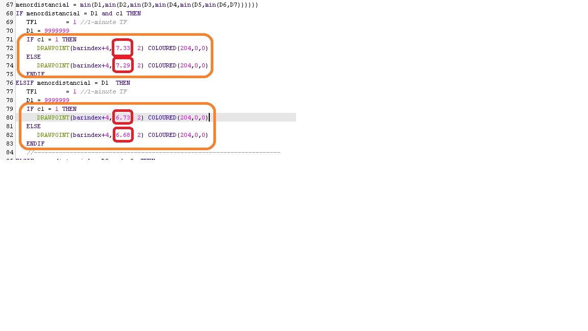 Luego hay que modificar todas las lineas donde hay DRAWPOINT, como hice yo (ver foto Pic2). Deberá experimentar para encontrar los valores correctos por encima o por debajo del PRECIO.