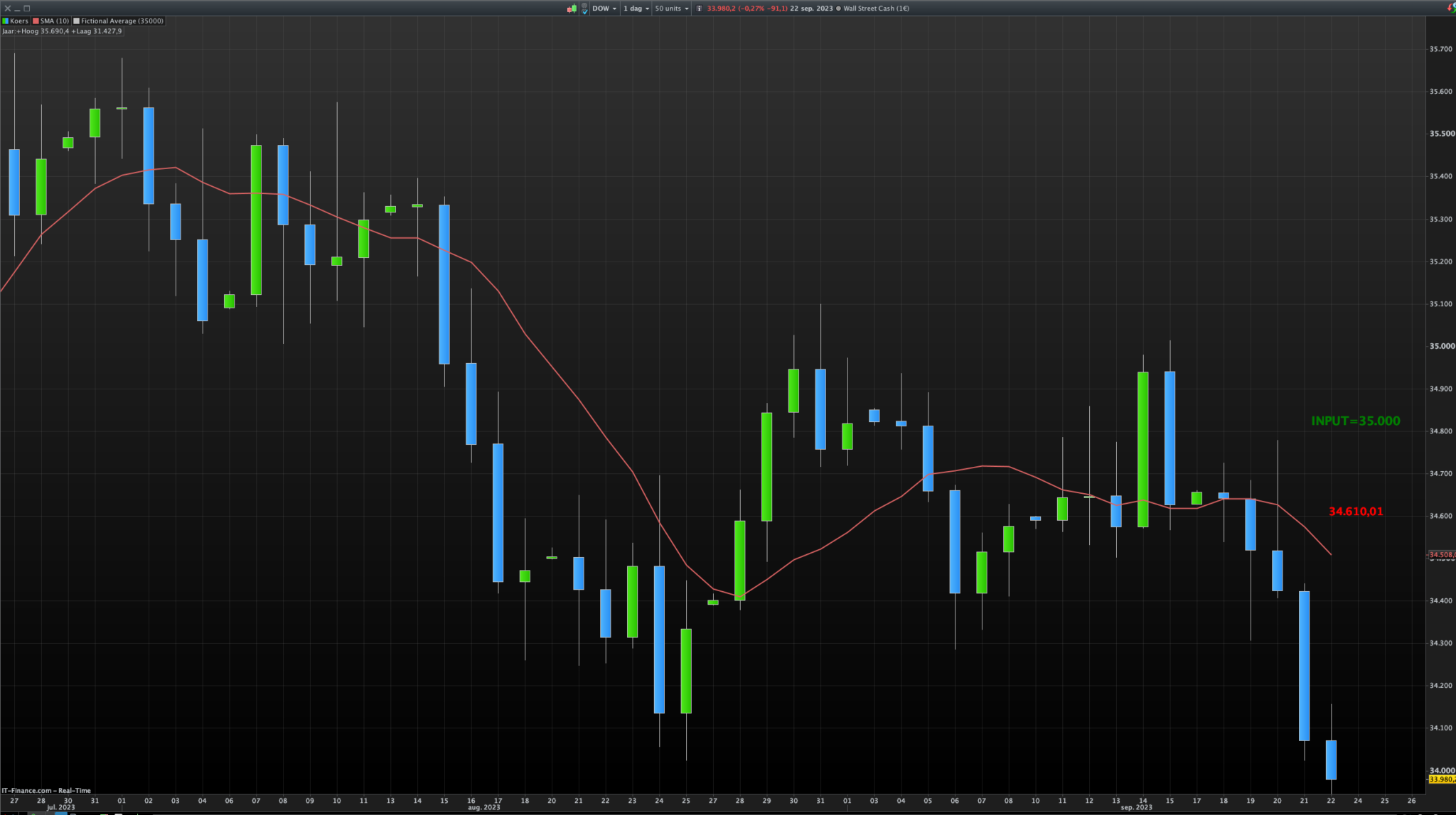 Por ejemplo una media de 10 períodos en un gráfico diario se calcula sobre el “close” diario, pues bien, me gustaría saber cómo quedaría la media si yo le pongo que la vela de ese día que aún está abierta, va a cerrar a un precio determinado dejando de seguir el “close” para calcular sobre el precio que yo le dé de cierre de esa vela manualmente, cuando la vela aún se está formando (Determino yo manualmente el último dato que la media de 10 períodos contará en su calculo en lugar de seguir calculándolo sobre la media de 10 períodos del “close” obligando a que sólo calculará hasta la vela anterior la media de 10 períodos sobre el close pero la última vela actual aún abierta que está formando le diría yo manualmente a qué precio se cerrará para ver cómo queda la media de 10 períodos si cierra en ese nivel) . Ejemplo:
