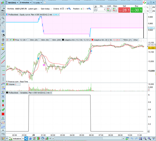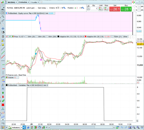 When running a back test this morning I noticed that a trade appears on some back-tests and not others. I have attached two graphics to highlight the differences. The strategy is live and the missing trade did occur in the live system. I ran the back-test multiple times and the results flipped between the two outcomes on an apparently random basis. This is not helpful. This is not a new strategy it has been live for several months. Also, in the graphics, I have graphed the flag which indicates when the market is open to trade (given that the Day and DayOfWeek parameters in PRT are of no use in Australia). You will note that when the trade does not occur that the flag indicates that the market closes at 8:10 AM Aus time rather than 6:00 AM Aus time which is on the other graphic and is correct. Is there something I can do to correct this? As is it it renders back-testing unreliable.