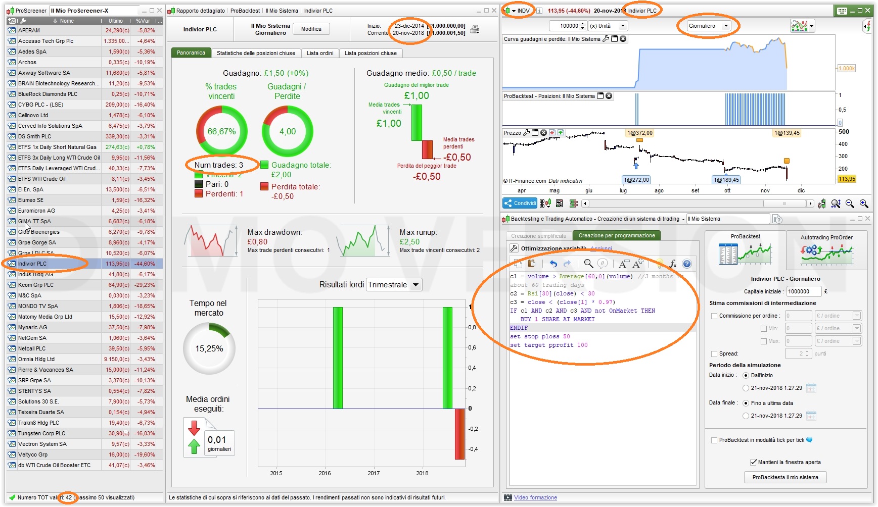 My back test is coming up with no results but when i back test on my Reuters manually I get multiple entry points! I just would like to confirm following