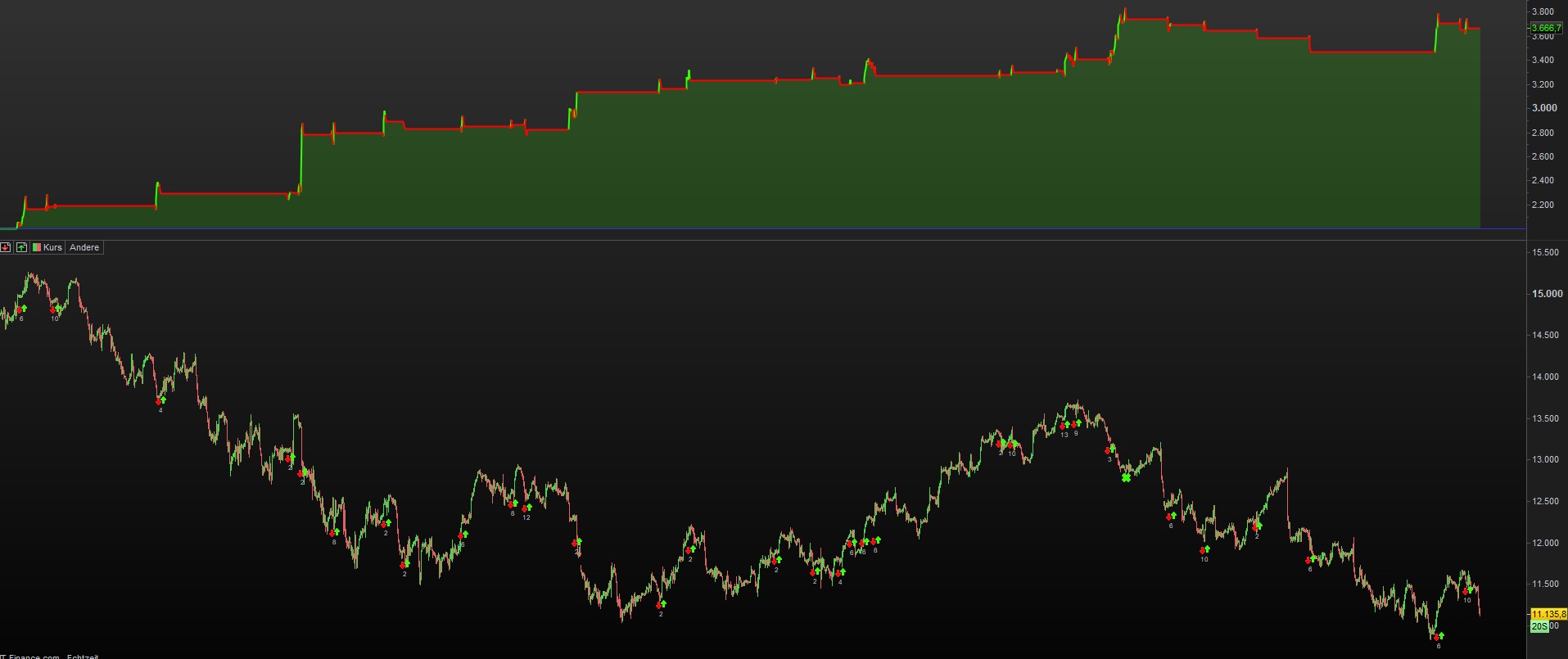 The Problem is that the backtest results on 200k bars look very different. Time zone has been adapted to german time zone.