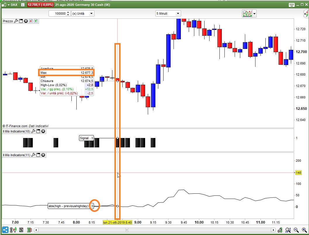 alors que l’on voit bien que abs(high – previoushighday) = 23.6 , je l’ai rajouté en indicateur eterne pour être sûr.