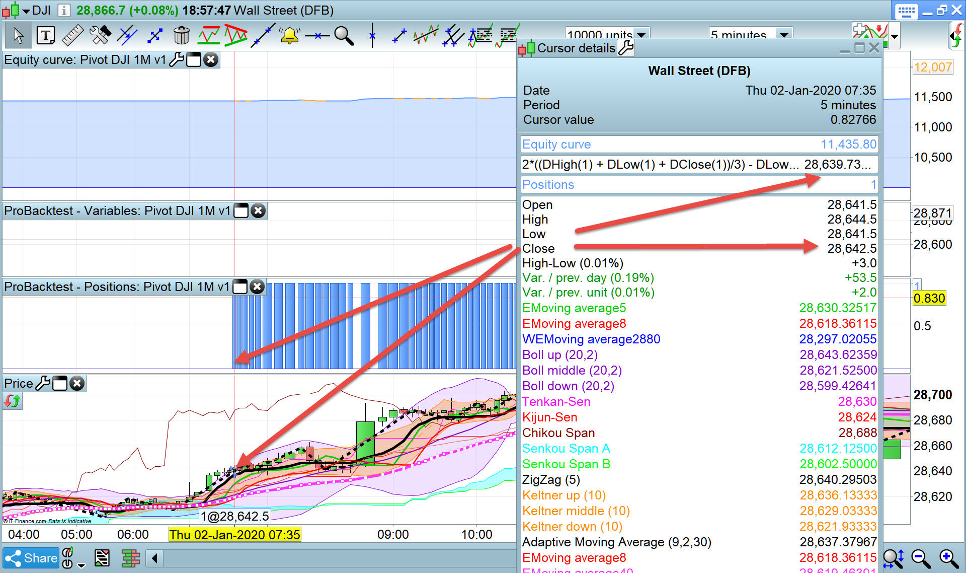 Have you tried using Cursor Details to analyse / compare price levels and Indicator Levels?