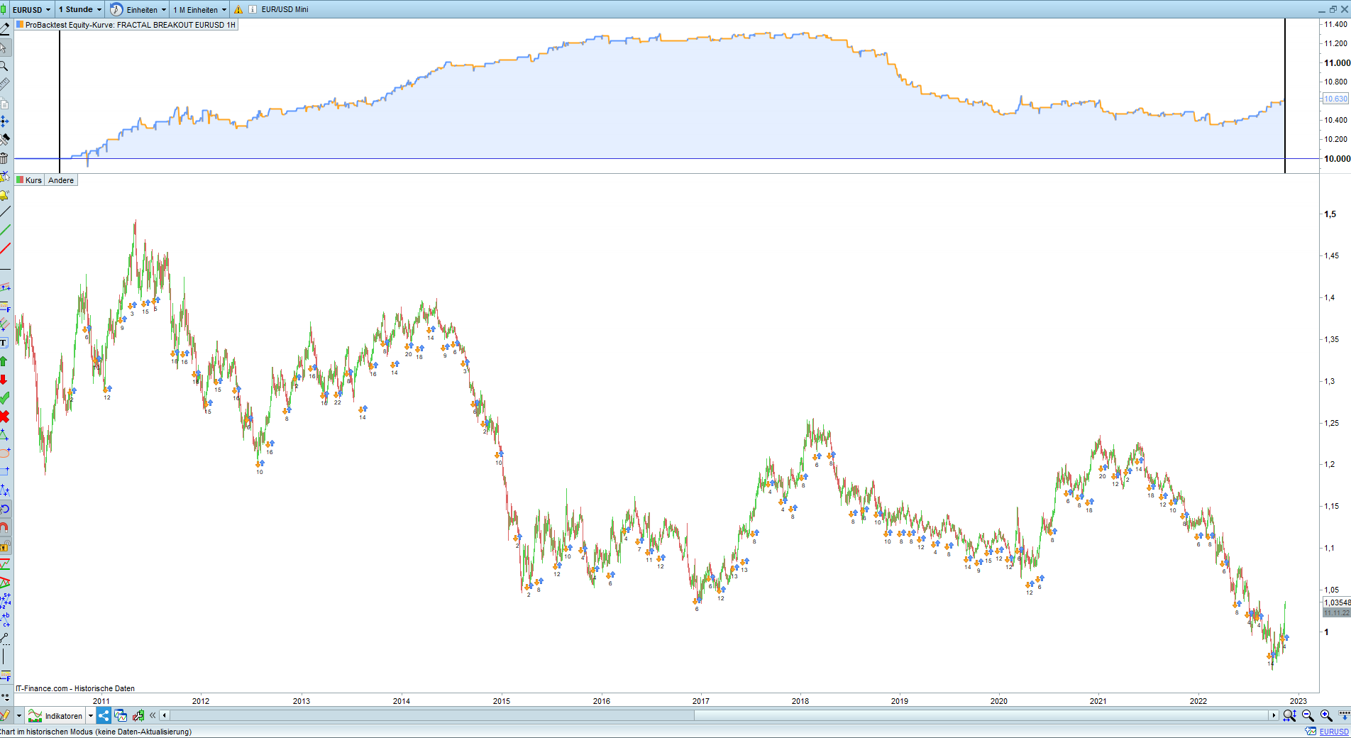 The test goes over 1 million units in the lower time levels.