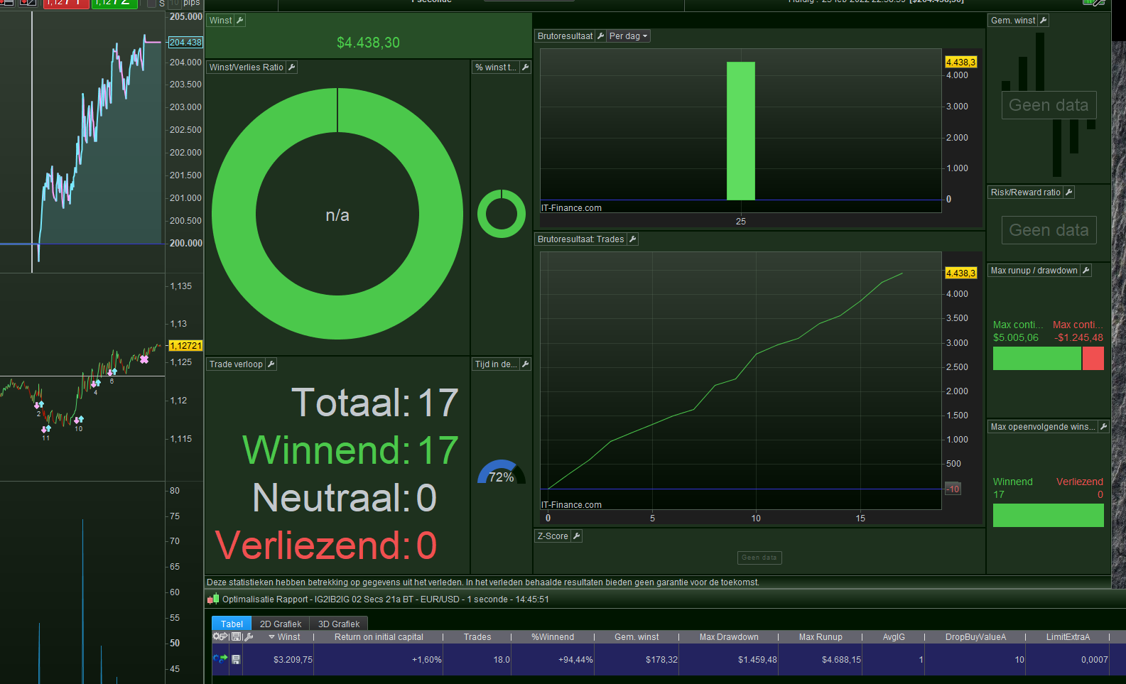 I would kind of bet that this happens since the same moment (upgrade ?) that the “level” you see in the 3rd attachment actively moves up and down (it tracks a virtual gain) while in such case it concerns a 1M historical backtest (result). So, nothing oughts to move there as the 1M chart won’t test forward as well. That does not bother me really (though it reflects the end result of the 1M backtest) but point is : a. it seems to happen since the issue of this topic and b. it looks very similar for the happening itself (the both end results (Optimisation and Statistic plus in this case the Chart) become inconsistent.