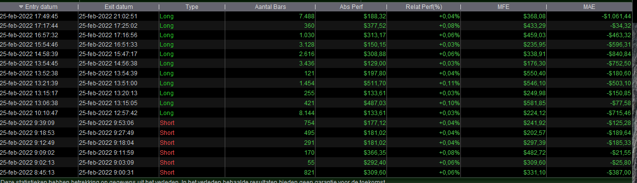 Here it is easy to see that the one losing trade (look at date/time) is not incorporated in the BackTest result (which has 100% profitable trades).