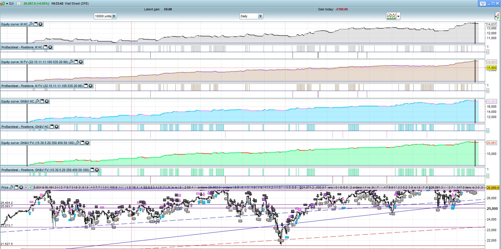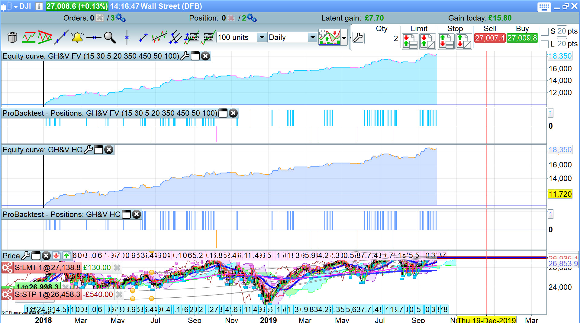 I maybe shouldn’t confess to this but my wife and I sometime play “smash ‘n’ grab” on the DJI at 14:30 or when the FED meets. This means a medium-big bet with a 10 point gStop and just grab some quick cash. Today, her ladyship opened short and got whipped out in the first minute. Some you win and…