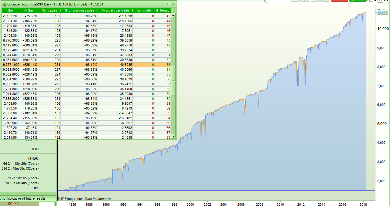 As I have said somewhere else in another thread I am at the moment finding that daily or weekly strategies suit me better as I like trading the bigger picture rather than the noise – but they do require a bigger starting capital and can involve bigger drawdowns hence my interest in working out which backtests have the lowest drawdown. If a trader has a million in the bank then it is very simple to make a guaranteed profit by averaging down in the recessions and increasing your stake as you do – and you never need worry about the draw downs. I’m a few quid short of the million right now though so draw downs can still hurt