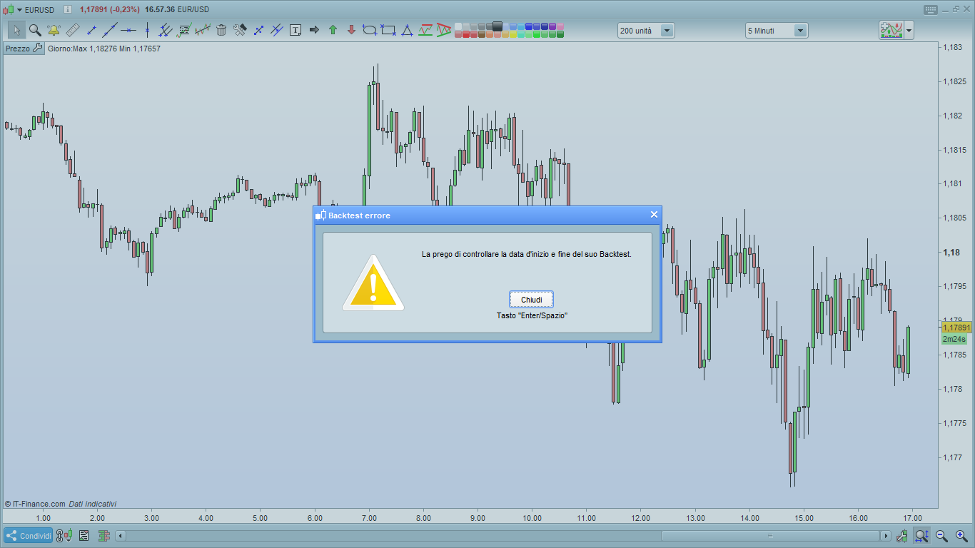 Salve a tutti quando vado a fare un backtest su una strategia di time frame 5 minuti mi da questo errore come posso risolverlo?