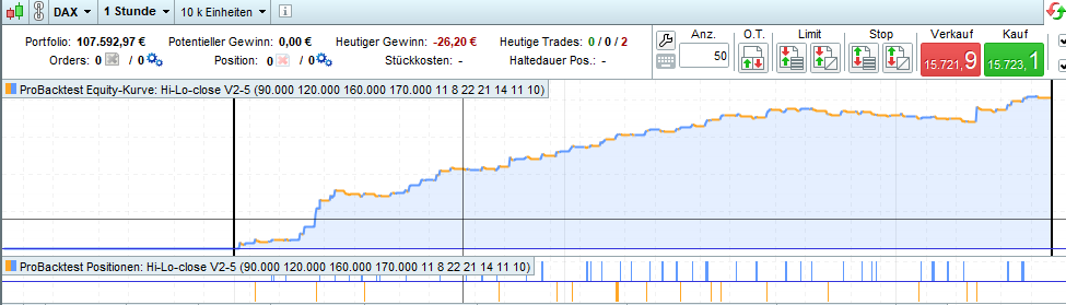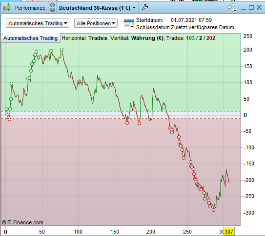 Now I have created a backtest today, over the same period, from 01.07.2021 until today. Result. 269 trades, profit around 2,000 € (picture: backtest and backtest2).