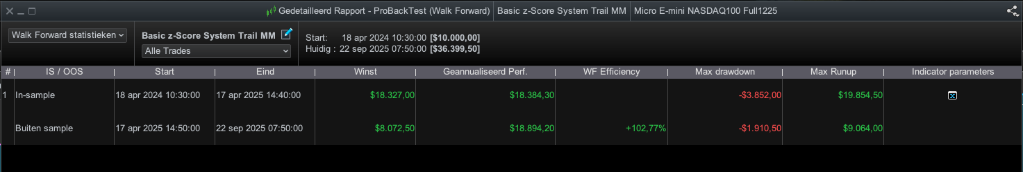 Penso che citare una WFE del 50% possa creare confusione. L’obiettivo è che il sistema guadagni circa lo stesso (ad es. profitto annualizzato) nel periodo OOS rispetto al periodo IS…