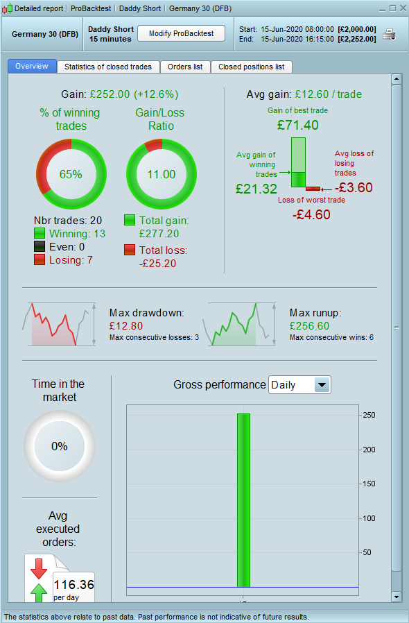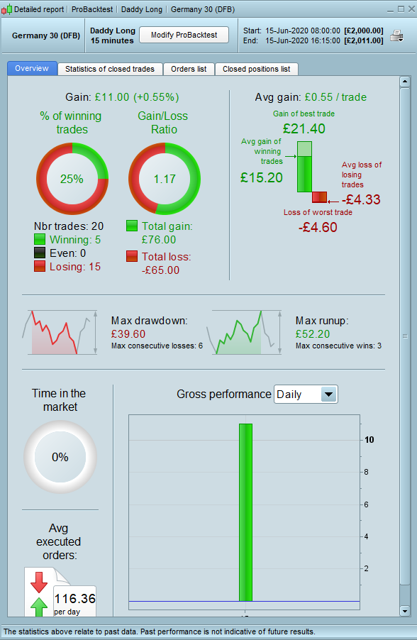 Dax 08:00 – 16:30 back test results
