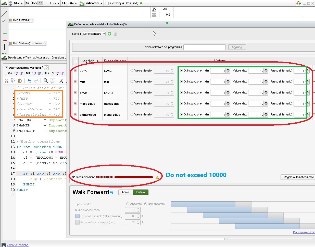 I want to check different EMAs and other variables to see how if I can optimize my system,