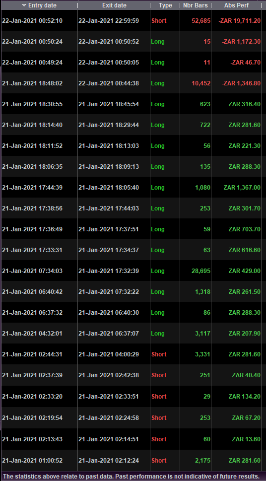 So, this is a clearly winning strategy (over this period) but because the BackTest ends where it ends, the trade is exited and registered as a loss (this latter is obvious).