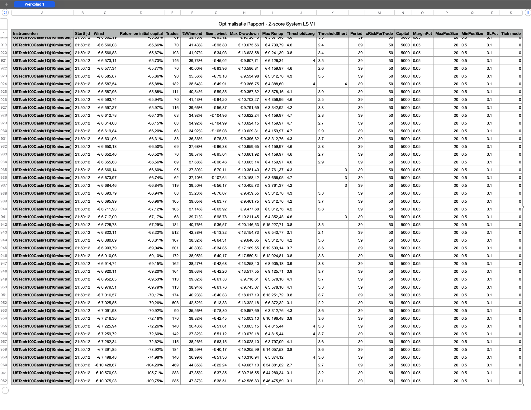 Puoi visualizzare tutti i risultati del “BackTest” quando esporti il report in formato “.csv” (è anche l’unico formato possibile) e poi lo apri in Excel o nel mio caso “Numbers” (Mac), ora vedi l’intero report e puoi fare lo stesso con esso (ordinare) come in PRT…