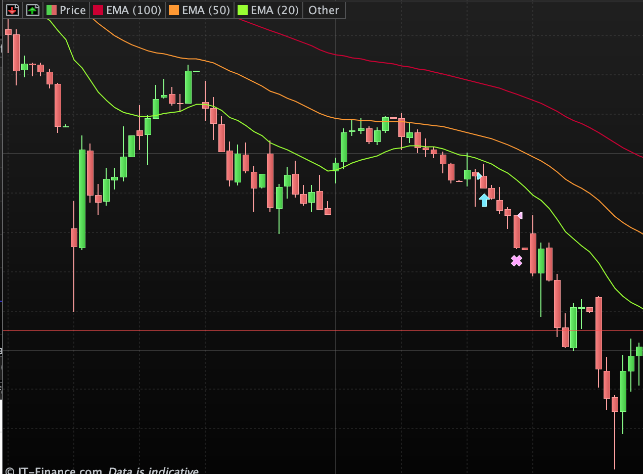 If LongOnMarket AND Average[20](close) CROSSES UNDER Average[50](close)THEN