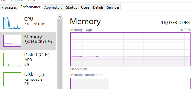 Then following your advice I removed 19 of the strategies in there, et voilá. The immediate difference is that the system now initialises to just under 5GB instead of over 6GB. See attachment. After over 5 minutes it is still at 5GB so there it stabilises. If I then start to run BackTests on two instruments (same BackTest), even up to 100K bars no graph commands added or removed, the first I notice is that it is way faster (something like over 5 times) and the next thing I see is that *that* stabilises at 6.7GB or so.