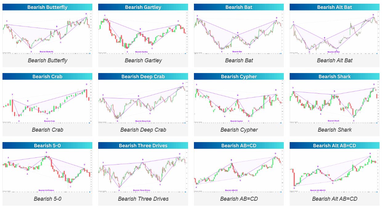 Here is the list of bearish harmonic patterns recognized by the indicator: