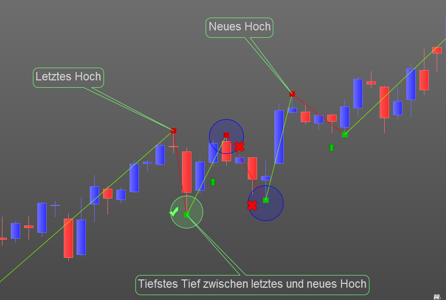 IF (close > HH) AND (HH > 0)and (HH > HHPrec) AND (LL > LLprec) AND (LLprec > 0)and (LL > HHPrec) THEN