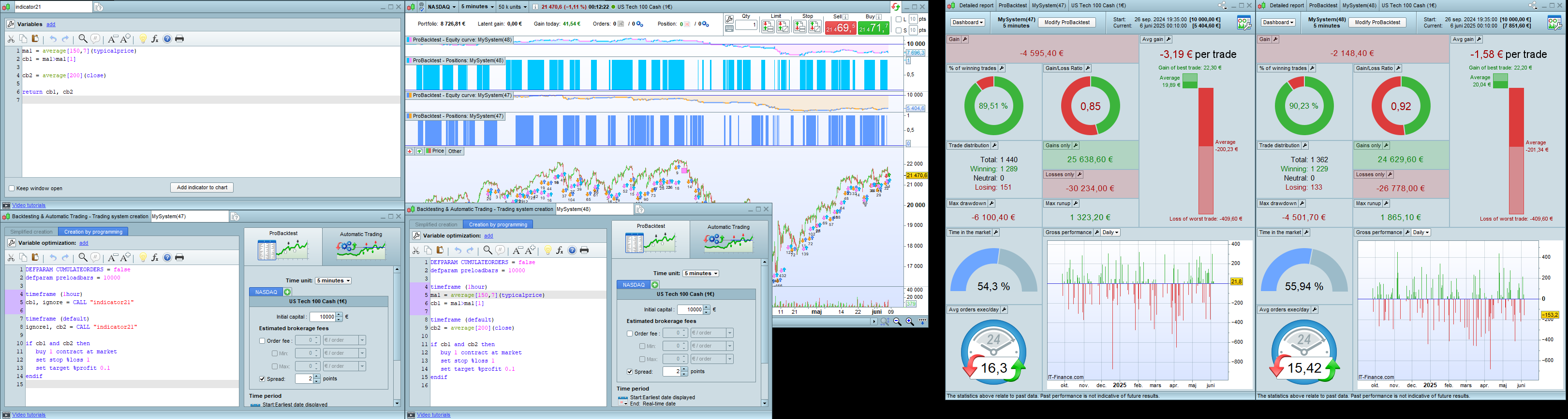 Now when I am backtesting thoose systems with calling for the indicator the backtest is totally wrong. I have tested multiple systems. Is there something wrong with ProRealTime at the moment? Or have I missed something, I am currently in panic. Please someone help!