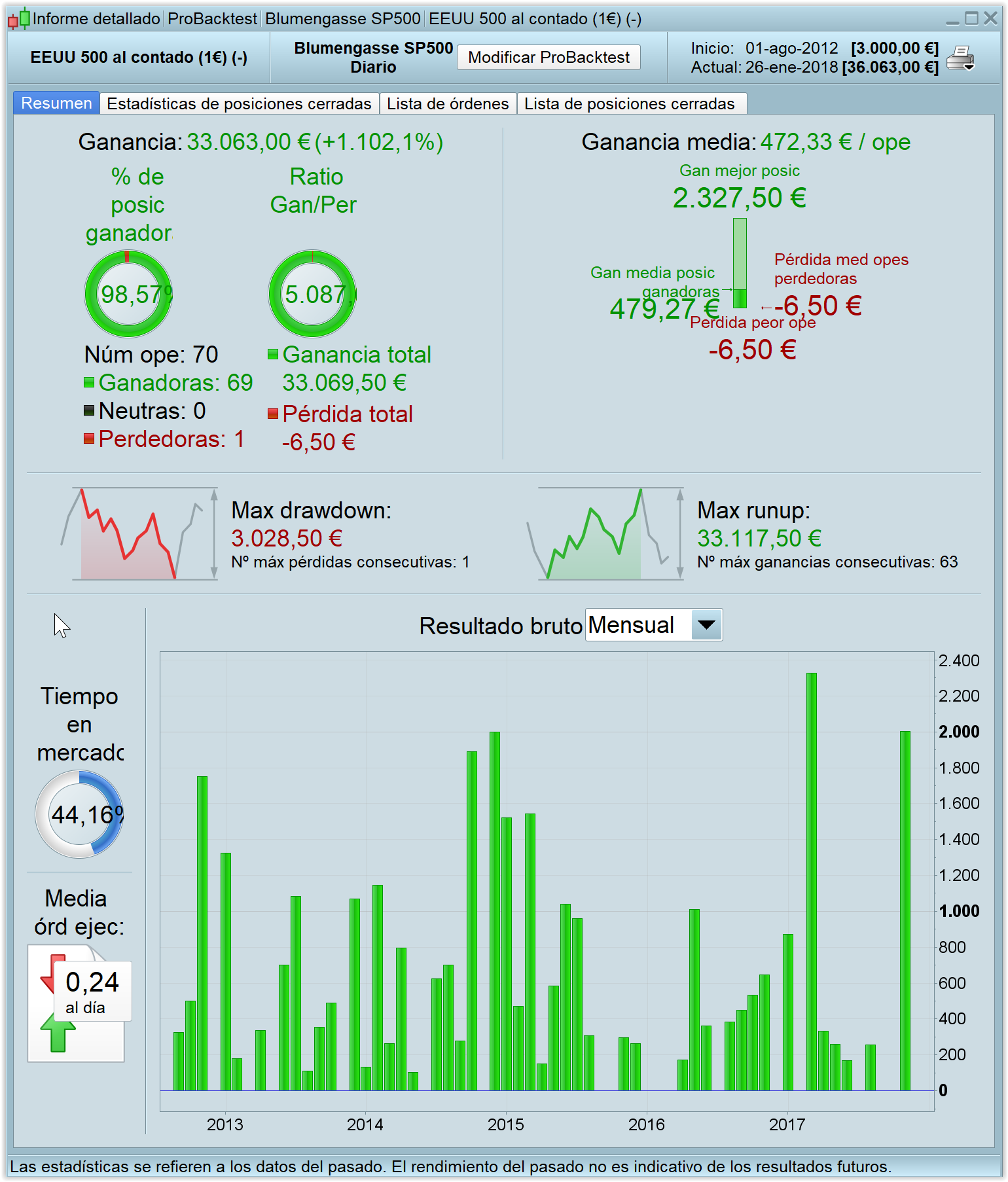 The results since 2011 are spectacular, and the drawdown does not exceed the 10%.